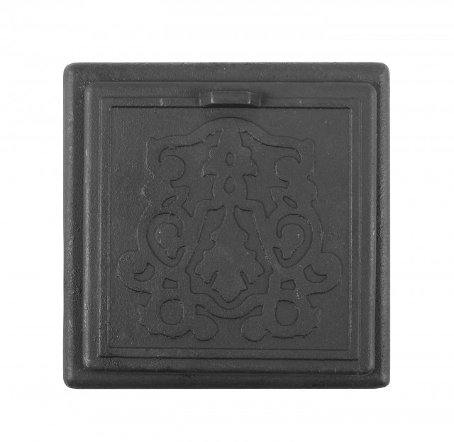 Съёмная литая крышка. Полностью снимается, что упрощает процесс прочистки колодцев печи. Подобные дверцы бывают оборудованы термошнуром, что делает прилегание рамки к крышке более плотным.