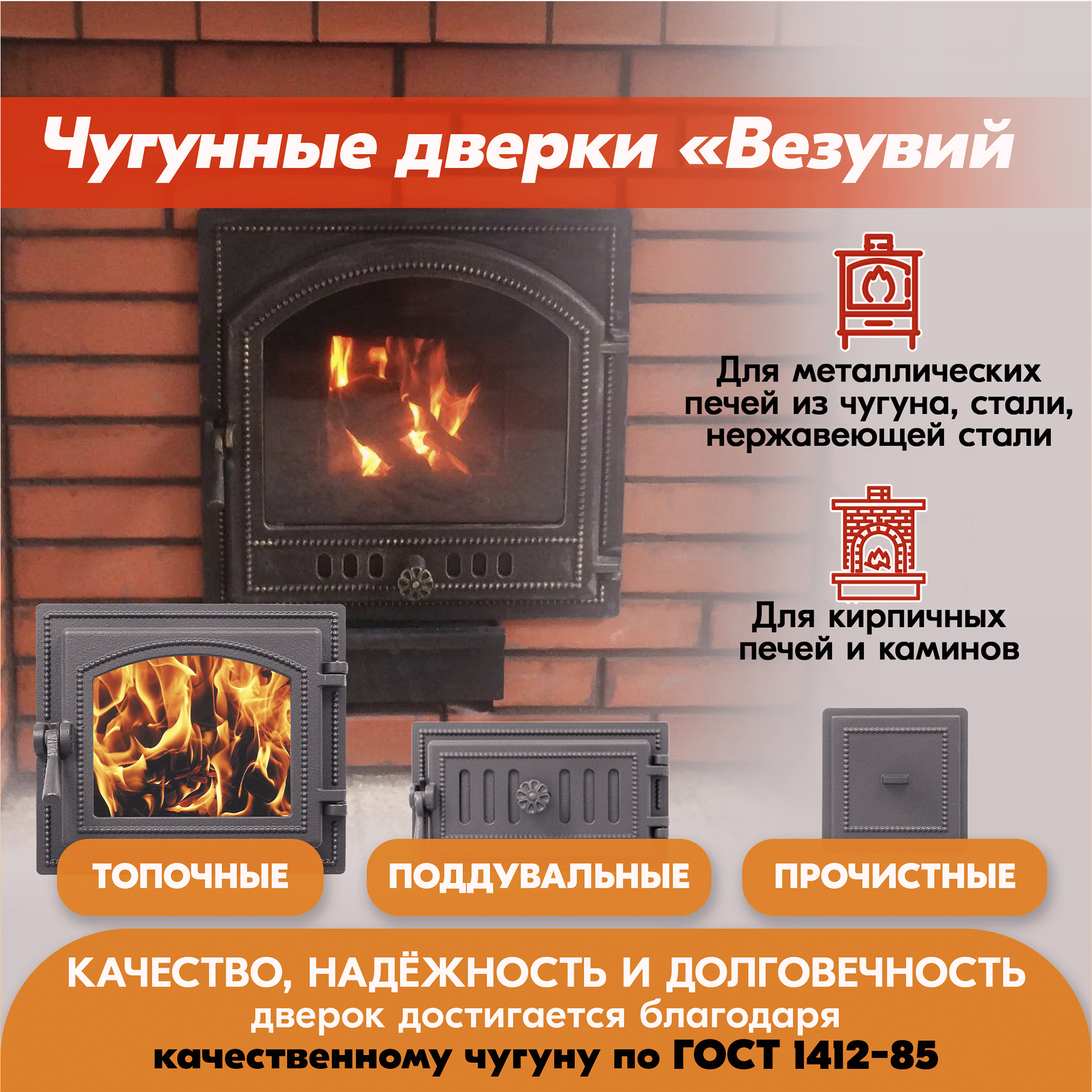 Печные чугунные дверцы Везувий негерметичного исполнения подходят для печей колосникового типа, и являются наиболее бюджетным вариантом из представленных топочных печей.
