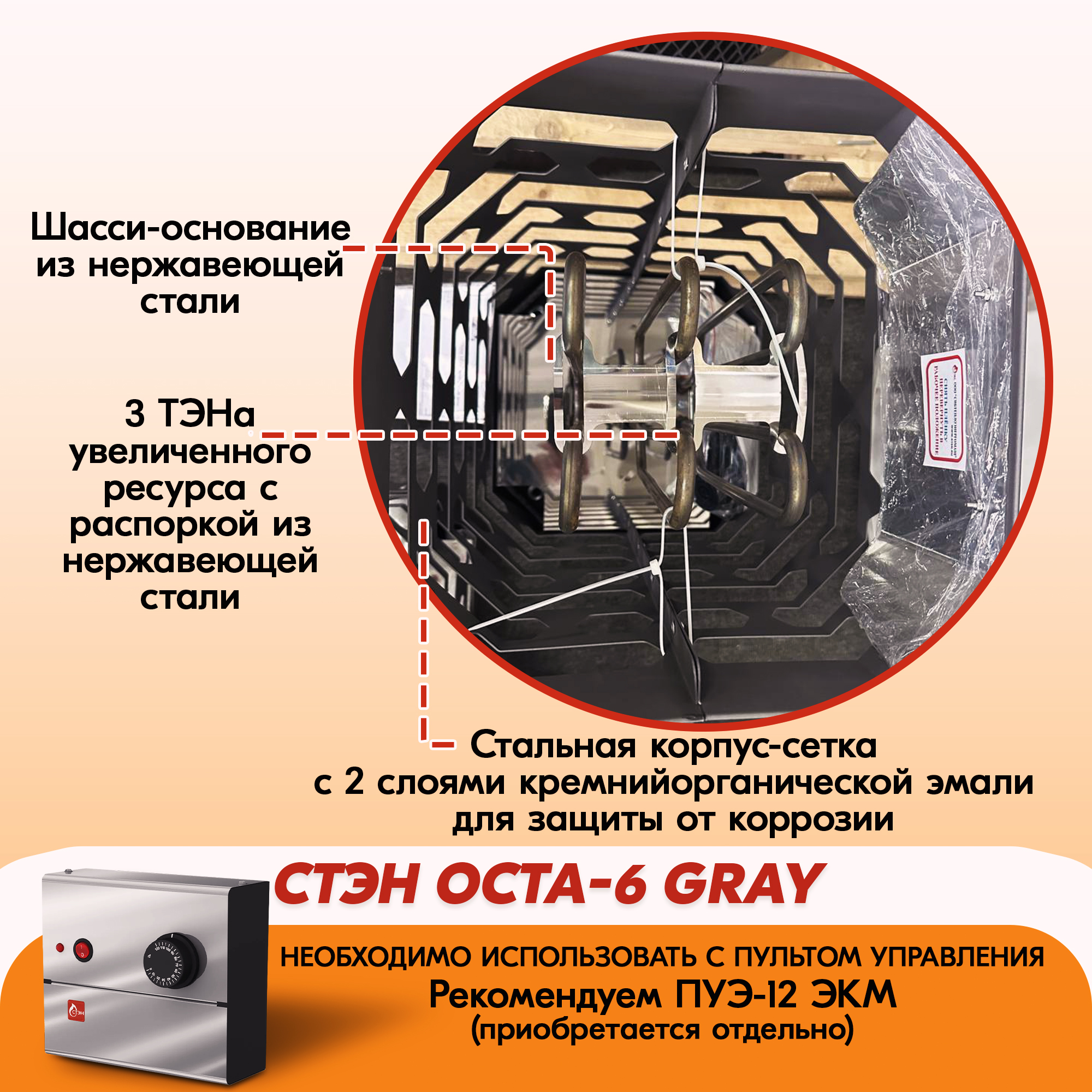 Электрическая каменка СТЭН ЭКМ 6 Octa gray в Белгороде | Доставка по России