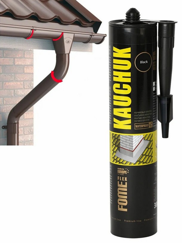 Черный герметик на основе каучука пригодится при герметизации швов, отверстий в конструкциях кровли, водостоках и соединений на фасадах.