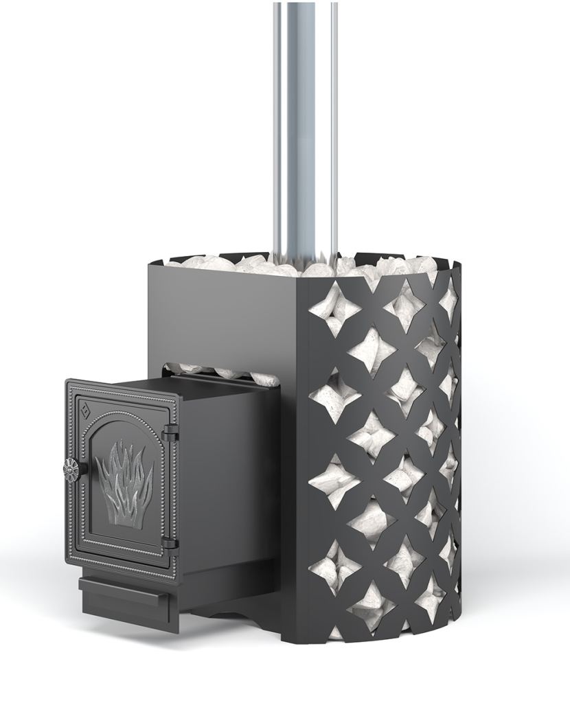 Кожух для открытой каменки диаметром 620 миллиметров вмещает в себя до 140 килограммов камней крупной и средней фракции.
