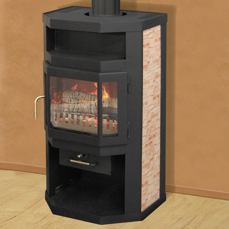 Корпус печи камина ОКА выполнен из листовой стали. Все металлические поверхности окрашены черной жаропрочной краской. Боковая поверхность печи камина ОКА облицована керамической плиткой. Топочная камера печей каминов ОКА выложены шамотной (огнеупорной) плиткой. К достоинствам внутренней футеровки следует отнести то, что она выравнивает перепады температур, а также позволяет дольше сохранять тепло, когда пламя уже погасло. Кроме того благодаря применению шамотных плиток, все печи камины ремонтнопригодны - каждая плитка легко заменяется в случае какого-либо повреждения. Печи камины ОКА изготовлены с применением импортных комплектующих в соответствии с немецкими технологическими стандартами, адаптированы к климатическим условиям в России. Печь камин ОКА предназначена для обогрева небольших жилых помещений, площадью до 70 кв.м.