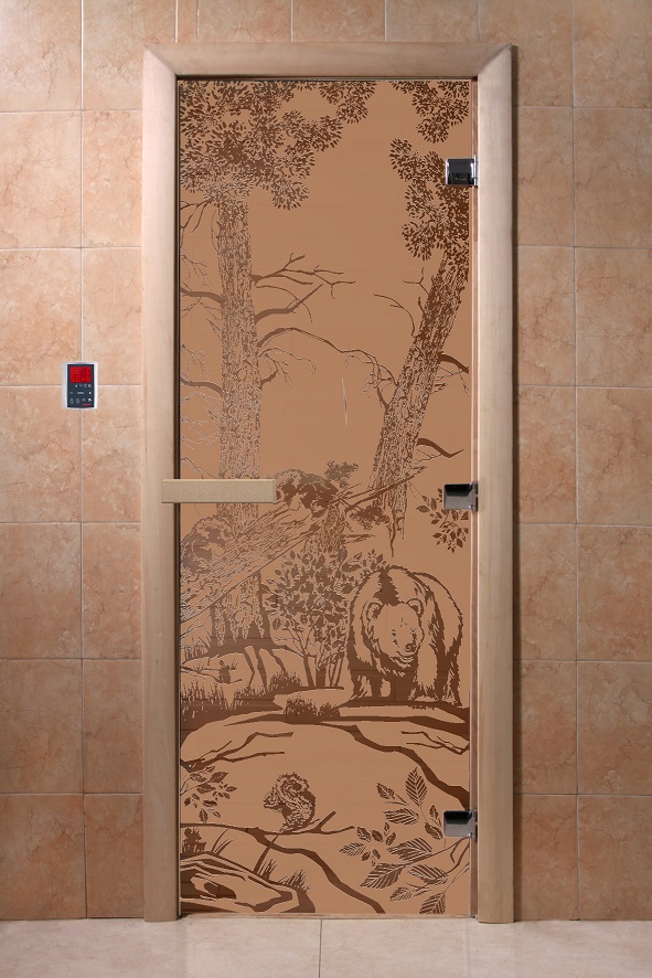 Дверь для сауны "Мишки в лесу" (матовая) 190х70 в Белгороде | Доставка по России