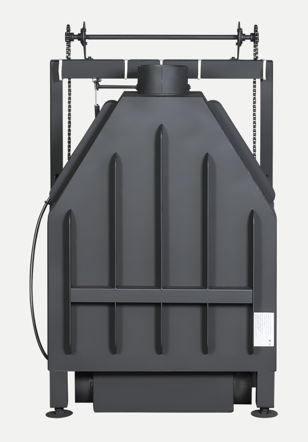 •Встроенная шиберная заслонка позволяет увеличивать/уменьшать сечение дымового канала и регулирует мощность топки.