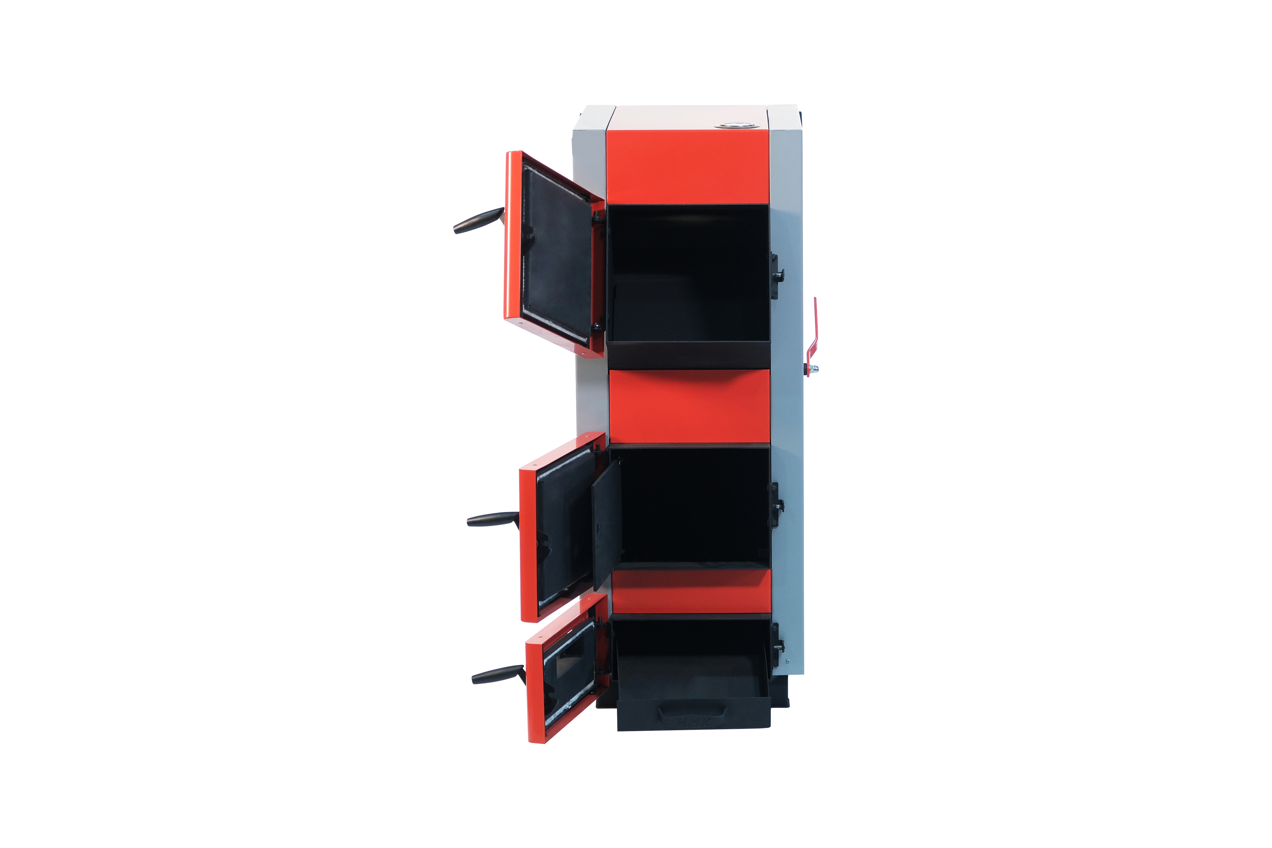 Для регулировки температуры, тяги, контроля пламени используется автоматический регулятор тяги. Котел имеет дверцу специальной конструкции, облегчающую загрузку топлива и уменьшающую риск просыпать уголь.