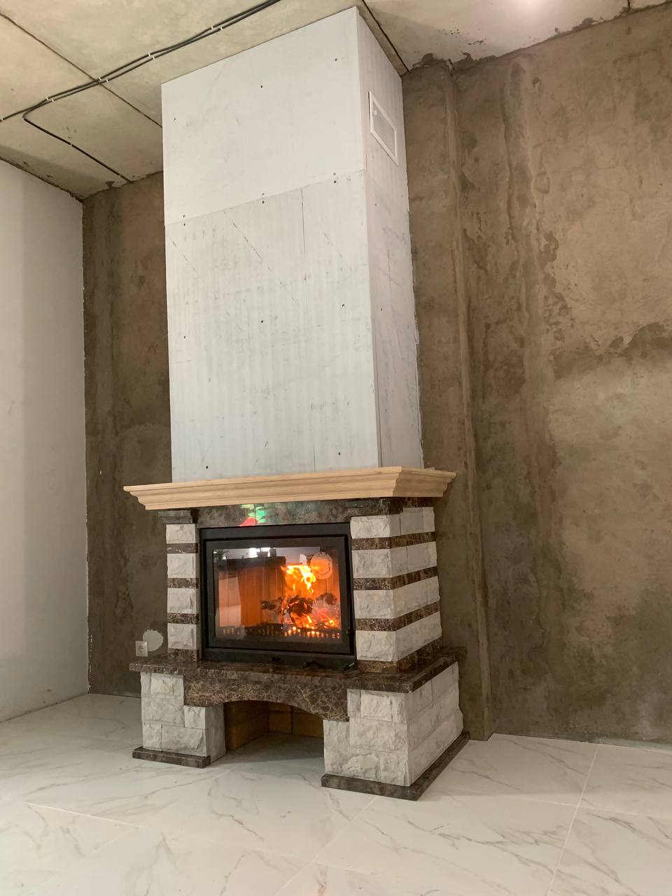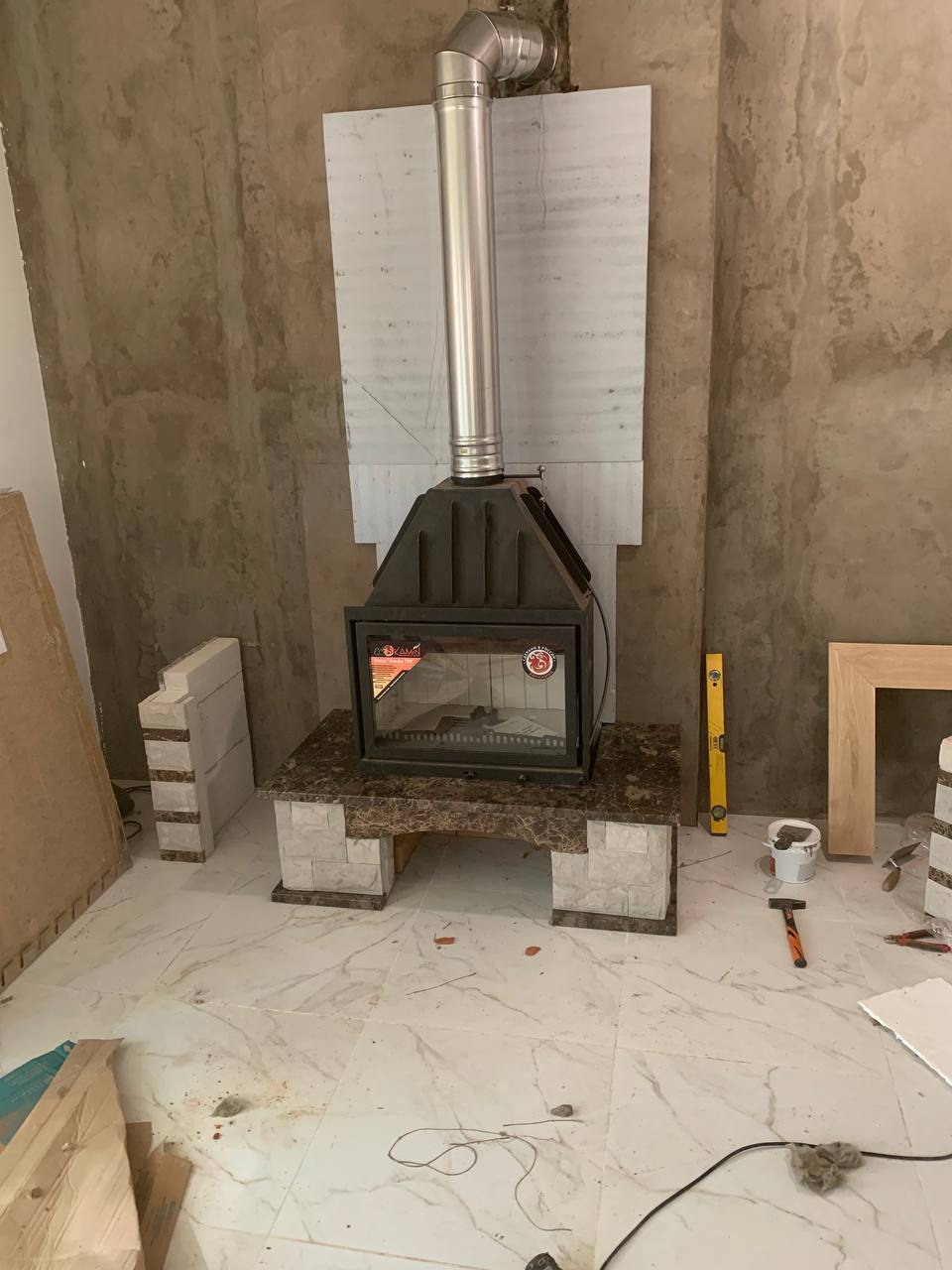 Установка каминой топки Альфа 700 и Облицовки Jabo Marmi Nina