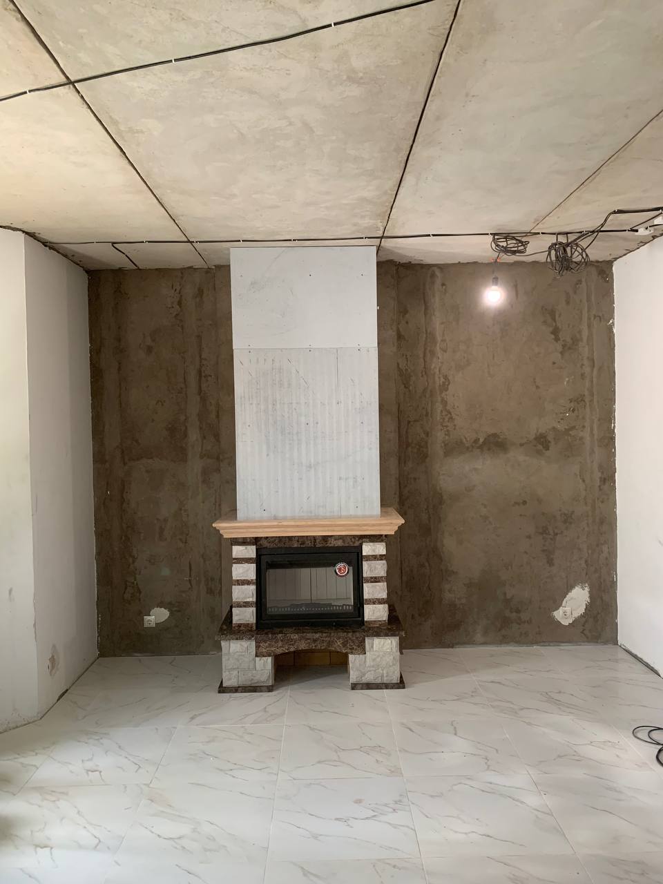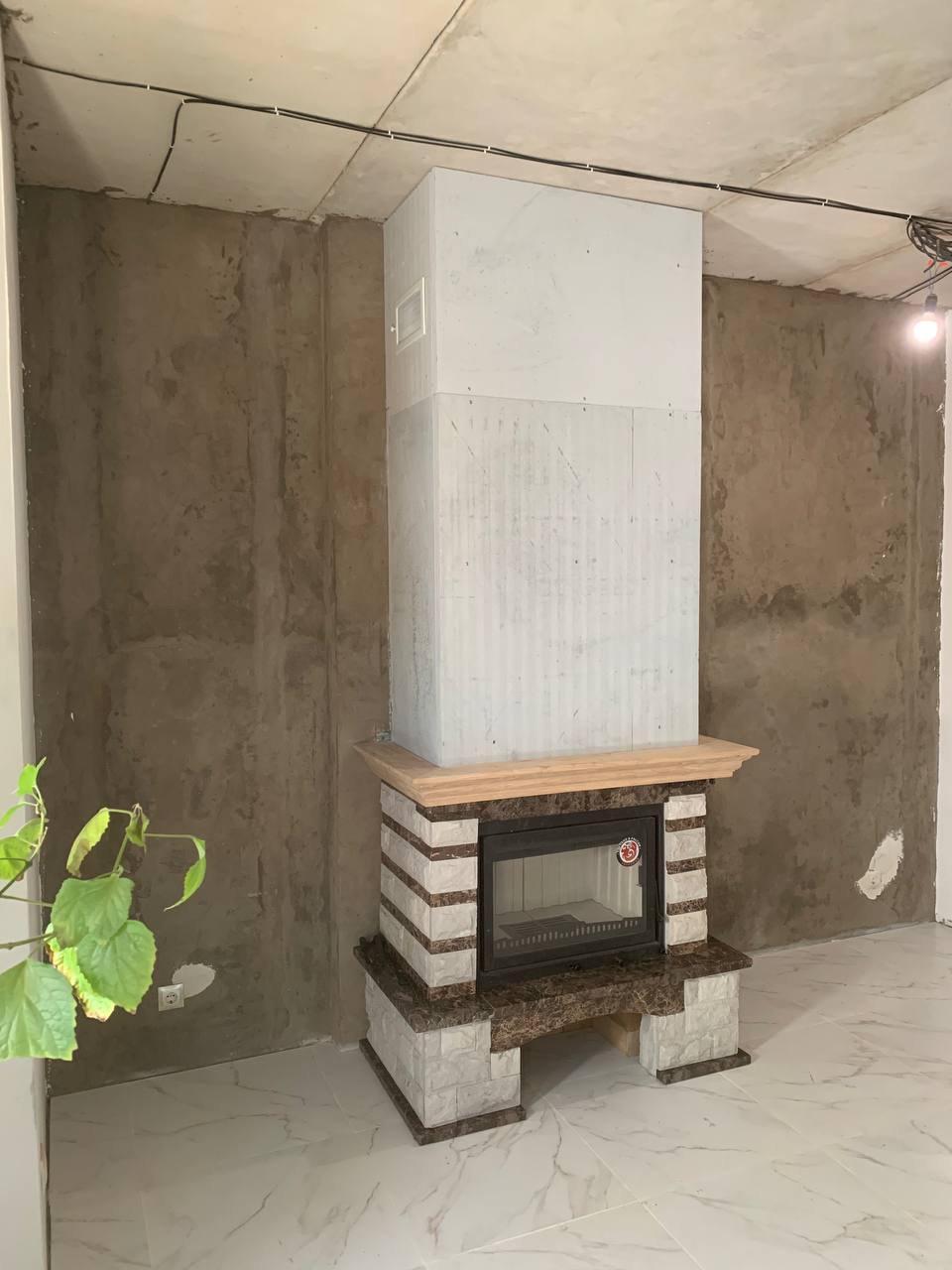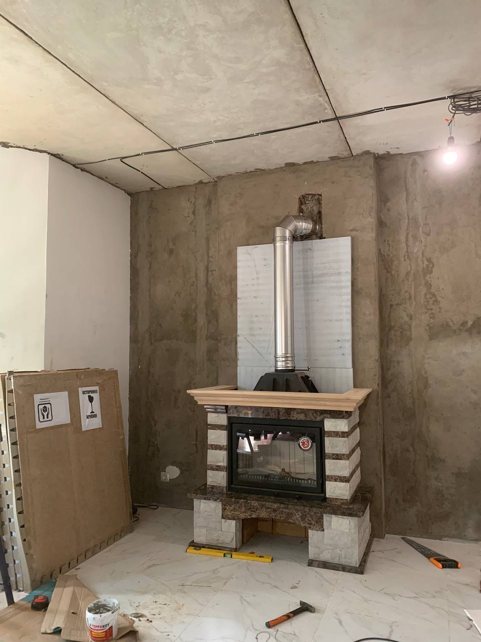 Установка Каминной топки, облицовки и монтаж дымохода через стену