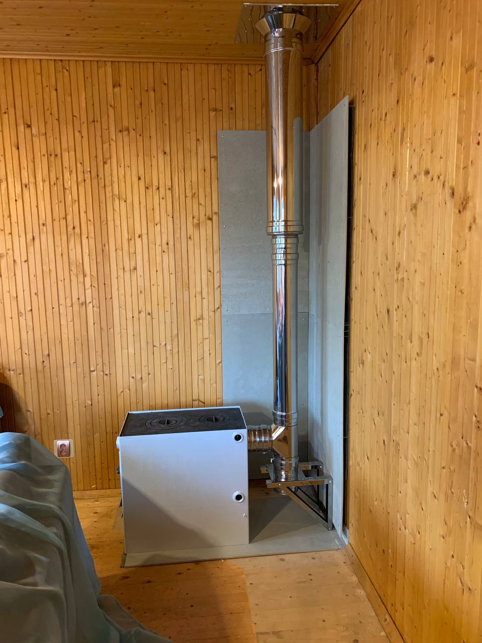 Монтаж Котела твердотопливного НМК Сибирь КВО-20 , Комплект дымохода Тис , плита Фламма